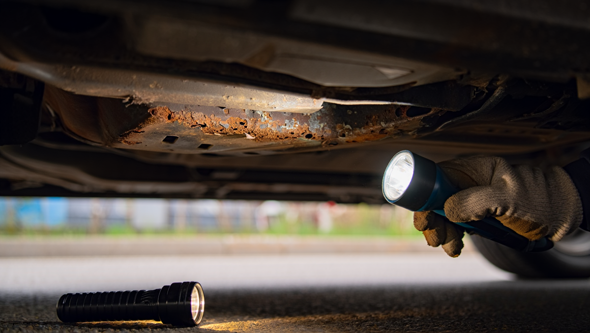 Без подъёмника или ямы полноценный осмотр невозможен — это факт. Снизу видны сразу все зоны риска: состояние антикора, наварки заплат (если кто-то уже пытался ремонтировать), сквозные очаги по сварным швам.