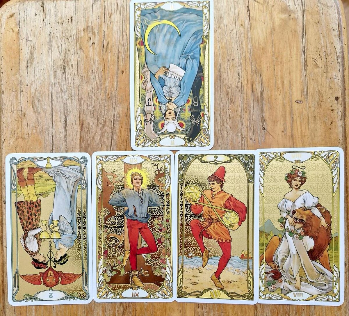 Три карты из пяти перевёрнутые — это уже само по себе говорит о периоде внутреннего напряжения. Поэтому главное на этой неделе — не форсировать то, что не идёт, и не игнорировать то, что давно требует внимания. Не нужно решать всё сразу. Достаточно сделать один маленький шаг там, где вы давно его откладывали. Хорошей недели всем нам! 🌙