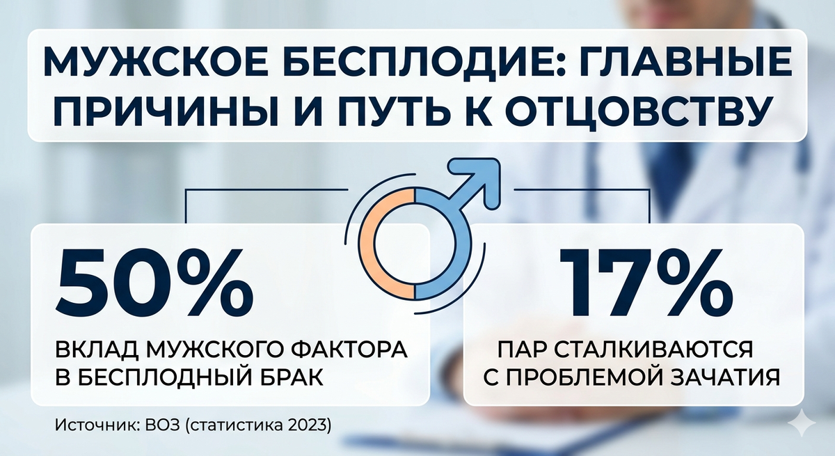 Многие пары годами ходят по врачам, обследуя только женщину. Но статистика неумолима: в 50% случаев причина трудностей с зачатием кроется в мужском факторе. Сегодня мы разберем две самые частые медицинские причины — варикоцеле и гормональный дисбаланс, а также заглянем в ту область, о которой мужчины обычно молчат: психологические переживания. По данным Всемирной организации здравоохранения (ВОЗ), около 17,5% взрослого населения — примерно каждый шестой человек в мире — страдают бесплодием. В России ситуация схожая: вклад мужского фактора в бесплодный брак постоянно растет. При этом современная диагностика позволяет выявить проблему за считаные дни. Варикоцеле — это расширение вен семенного канатика. На первый взгляд, это кажется чисто «сосудистой» проблемой, но для репродукции это критично. Многие мужчины даже не подозревают о таком диагнозе у себя, потому то первая стадия варикоцеле протекает часто бессимптомно. У нас были пациенты, которые вспоминали, что когда-то лет в 16 уролог с