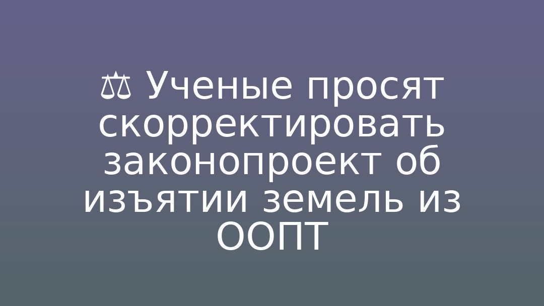 правительственный законопроект, разрешающий изымать участки из состава федеральных и региональных особо охраняемых природных территорий для строительства объектов федерального значения. Документ принят в первом чтении 18 марта. Инициатор обращения — межрегиональная организация Экспертный совет по заповедному делу (создана в 2023 году).