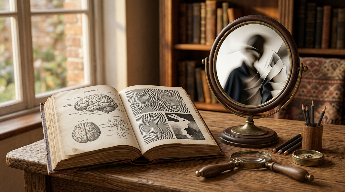 Классический пример - слепое пятно. У каждого человека в глазу есть место, где нет светочувствительных клеток. Мозг просто «заполняет» эту дыру информацией из соседних участков. Вы никогда не замечаете чёрную дырку в поле зрения - мозг делает вид, что её нет. Я проверил это простым упражнением с карандашом и точкой на бумаге - и да, точка исчезает, а мозг рисует вместо неё белый фон. Мозг иногда путает новые впечатления с воспоминаниями. Когда сигналы идут по разным нейронным путям с небольшой задержкой, возникает ощущение «это уже было».