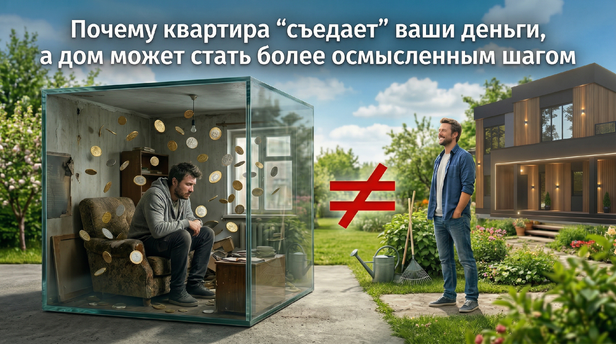 Не только из-за коммунальных платежей. Квартира часто создает скрытые расходы: нехватку хранения, плату за внешнюю инфраструктуру, ограничения пространства, траты на смену обстановки и постоянную адаптацию к тесному формату жизни.
