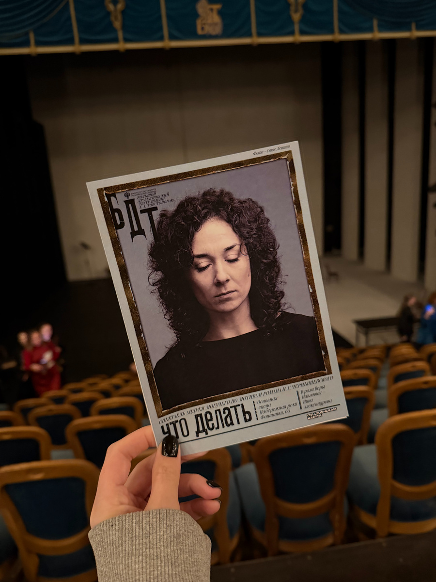 Спектакль Андрея Могучего в Большом драматическом театре по роману Чернышевского — один из тех случаев, когда постановка делает школьную классику захватывающей. Чернышевский — больше философ, чем писатель. Его главному произведению не хватает красоты слога, а до красоты смыслов рядовому школьнику добраться очень сложно через, казалось бы, скучный сюжет. Может, поэтому далеко не все в юности оценивают «Что делать?» по достоинству. Могучий выводит главную мысль из книги на сцену, крупным планом показывает её на огромном экране и буквально даёт ей рупор в руки. В такой форме мысль доходит до всех — даже до сидящих в телефоне половину действия, очевидно случайно попавших на спектакль милых дам, в полный голос отвешивающих комментарии «а вот сейчас уже ничего пошло». Один петербургский режиссёр рассказывал, что не досиживает большинство спектаклей до конца — всё быстро становится понятно, неинтересно, а вот «Что делать?» он посмотрел целиком — не оторваться было. Полтора часа сценического в