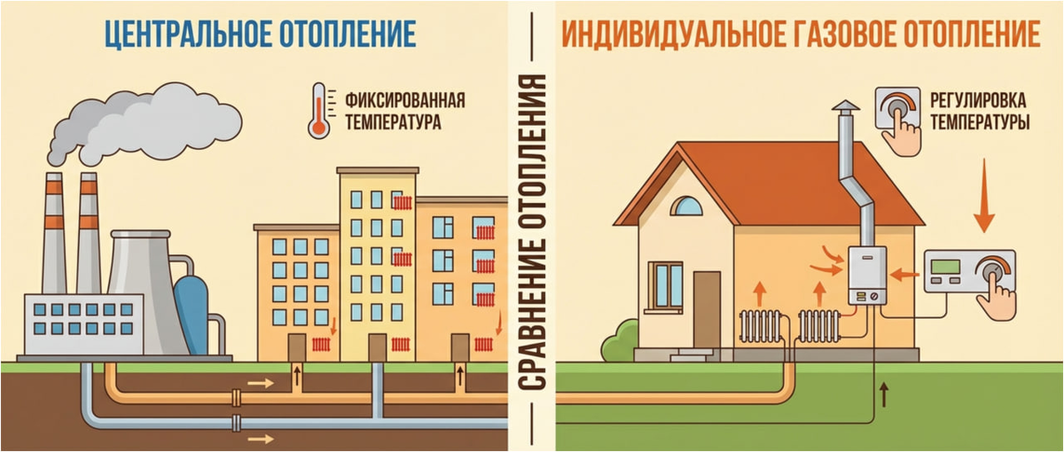 Каждый инженер-проектировщик рано или поздно сталкивается с этим выбором — и он далеко не очевиден. Давайте разберём. 1️⃣Центральная система (ЦТП/ИТП от теплосети) ➕ Минимальная нагрузка на проектировщика внутри здания — схема относительно типовая ➕ Нет необходимости проектировать котельное оборудование, дымоходы, вентиляцию топочных ➕ Надёжность — обслуживание на стороне ресурсоснабжающей организации ➖ Зависимость от сроков подачи/отключения тепла — жильцы мёрзнут в межсезонье ➖ Сложный гидравлический расчёт при разветвлённых системах, перепад давлений диктует теплосеть ➖ Ограниченные возможности регулирования по-квартирно — приборный учёт и балансировка требуют грамотной проработки 2️⃣Индивидуальное отопление (поквартирное, газовый котёл) ➕ Полная автономность — жилец сам управляет комфортом и расходами ➕ Поквартирный учёт "из коробки", снижение конфликтов с УК ➕ Интересный для проектировщика объём работы: котёл, дымоход, коаксиальные трубы, автоматика ➖ Есть усложнения: нужна индиви