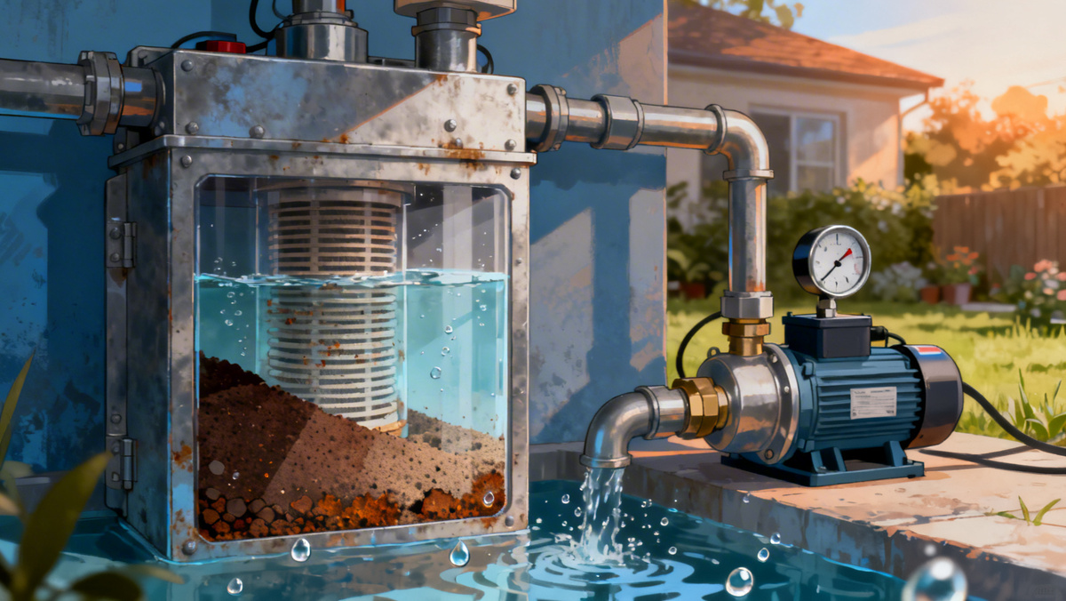 Когда в воде ржавчина, окалина, механическая взвесь, чаще работает схема: грубая ступень плюс картриджный или дисковый фильтр 10–25 мкм. Это уже не только защита насоса, но и защита сантехники, смесителей, клапанов.