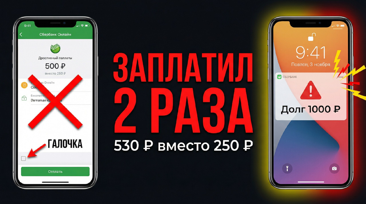📌 Подзаголовок: Думал, что оплатил штраф вовремя. Через 2 месяца пришло постановление о двойном размере — и я разобрался, почему так произошло. Спойлер: проблема в одной неприметной галочке. 5 марта 2026 года я получил SMS о штрафе 500 ₽ за превышение скорости на 15 км/ч. «Мелочь», — подумал я, — «оплачу сегодня вечером со скидкой 50%». Вечером того же дня открыл СберБанк Онлайн, нашёл штраф, нажал «Оплатить», увидел галочку «Согласен с условиями» — и быстро провёл пальцем по экрану. Через 2 месяца, 15 мая, в почтовом ящике лежало постановление о взыскании 1000 ₽. Двойной размер. Плюс 30 ₽ комиссии за перевод. Я заплатил 530 ₽ вместо 250 ₽. И узнал, что таких как я — тысячи каждый месяц. Что я сделал не так: Открыл приложение в 22:47, когда скидка действовала до полуночи. Думал — успеваю. Но не заметил, что сумма к оплате показывала 500 ₽, а не 250 ₽. Галочка «Оплатить со скидкой 50%» стояла внизу экрана, за пределами видимой области. Я промахнулся пальцем — и она снялась. 15 мая 2026