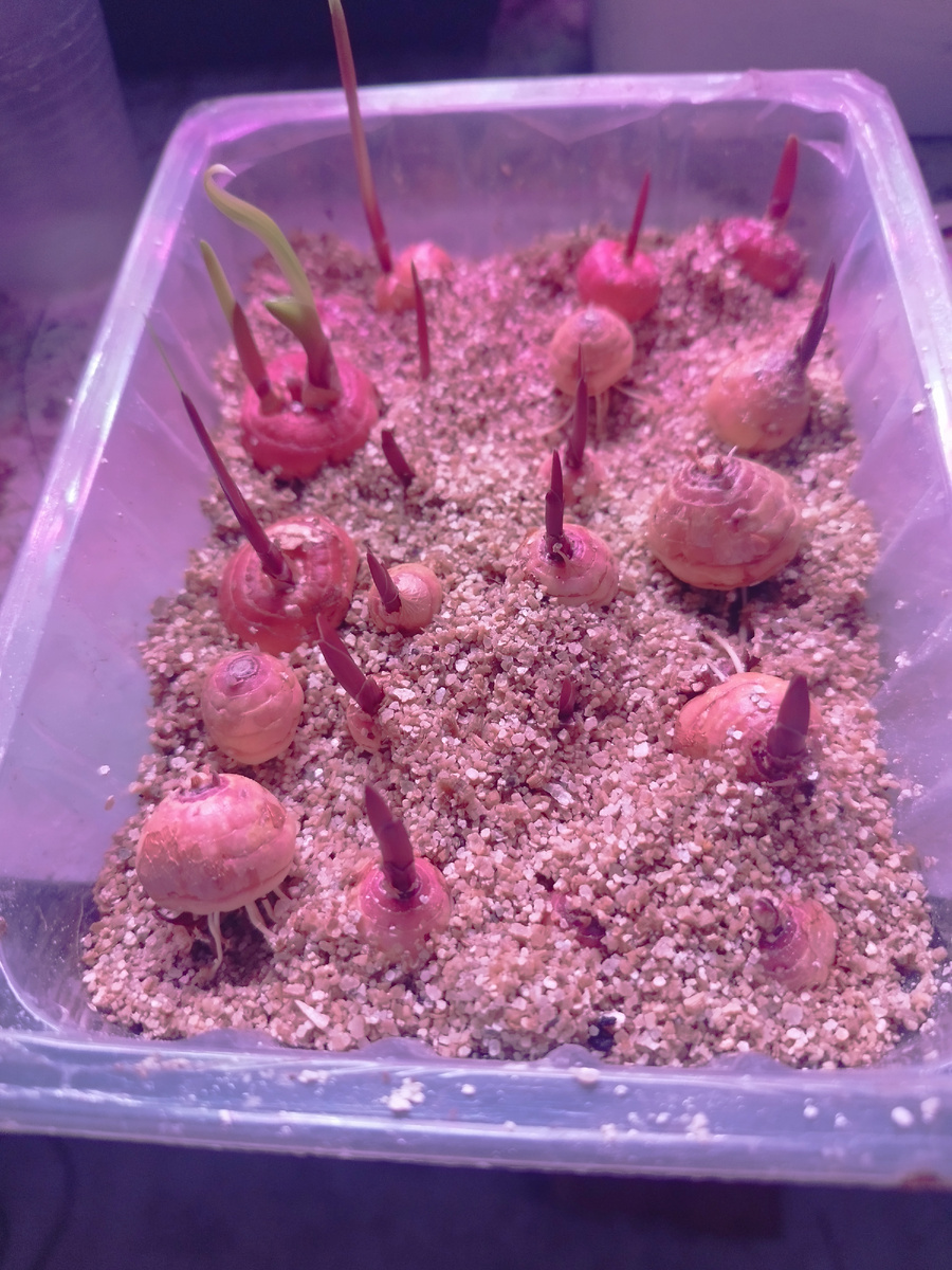Ранее я говорила о том, что поставила проращиваться гладиолусы, монтебрецию и ацидантеру.
