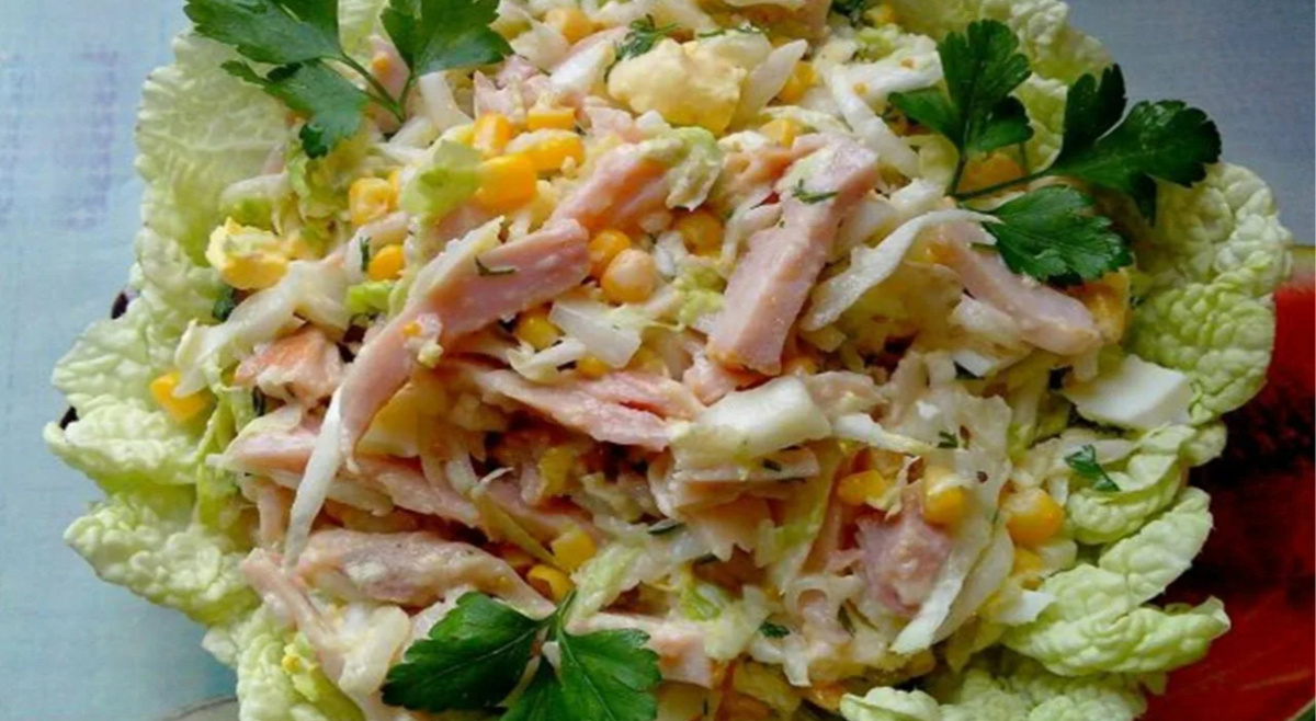 Лёгкий, сытный и яркий салат — идеальный вариант для обеда или лёгкого ужина. Нежные кусочки куриной грудки, хрустящая пекинская капуста, сочные огурцы и сладкая кукуруза создают гармоничное сочетание. Чесночный аромат добавляет пикантности, а соус на основе сметаны и майонеза делает вкус сбалансированным.
