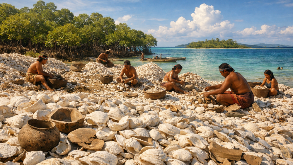 Археологи, исследующие архипелаг Фиджи, наткнулись на необычный остров площадью 3000 квадратных метров. Как выяснилось, этот клочок земли вблизи побережья Куласавани почти на 90% состоит из остатков съедобных моллюсков и фрагментов древней керамики. Исследование, опубликованное в журнале Geoarchaeology, доказывает, что перед учеными не природный объект, а рукотворный «холм» из пищевых отходов возрастом более тысячи лет, сообщает Phys.org. Радиоуглеродный анализ показал, что остров начал формироваться около 760 года н. э. В течение нескольких столетий древние мореплаватели использовали это место как специализированную базу для переработки морепродуктов. Они собирали моллюсков в огромных количествах, очищали их и выбрасывали раковины в одну кучу. Со временем гора пустых панцирей выросла настолько, что превратилась в полноценный остров, возвышающийся над водой даже во время прилива. Ученые классифицировали находку как «кьёккенмёддинг» (midden island) — мусорный остров, созданный в результ