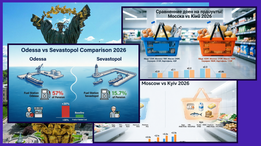 Репортаж-расследование: сколько на самом деле стоит «обычная жизнь» в столицах и портовых городах по разные стороны границы. Начинаем с простого: суббота, утро, привычный ритуал. Сел в машину — заехал на заправку — загрузил тележку в супермаркете. Никакой экзотики, никакой «икры заморской». Яйца, молоко, масло, картошка, курица, хлеб, рыба. То, что и в Москве, и в Киеве, и в Одессе стоит на каждой кухне. Именно по этим «скучным» вещам и будем сверять «цену жизни». Для чистоты эксперимента — две пары городов-близнецов: Москва, заправка, 30 марта 2026 года.