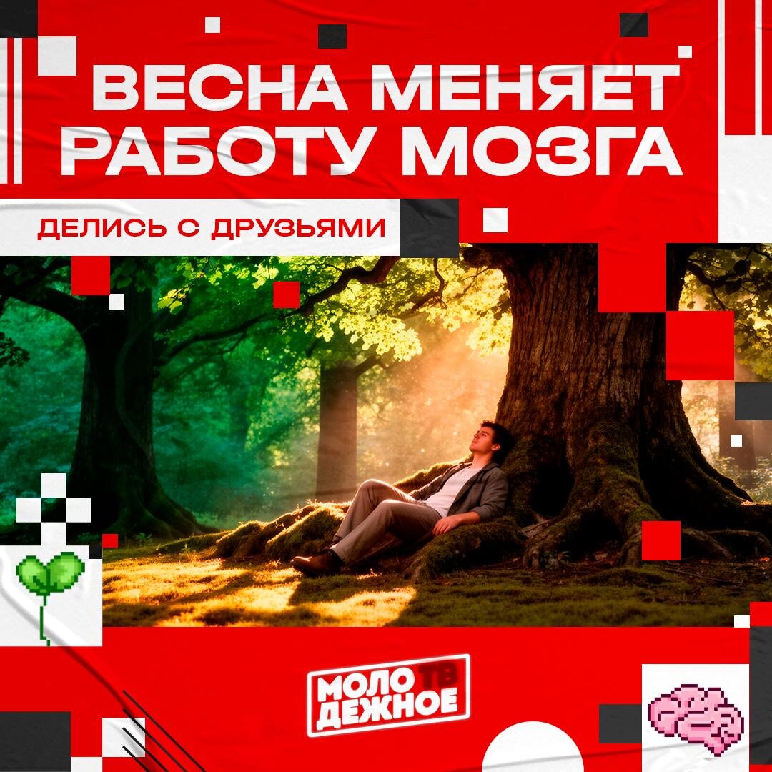 🤩🤩🤩🤩🤩🤩 🤪А вы знали, что весна улучшает настроение и активирует мозг? 🧠Длинный световой день снижает мелатонин — гормон сна — и настраивает биологические часы. Учёные из Льежа обнаружили, что яркий свет влияет на миндалевидное тело, отвечающее за эмоции, особенно весной и в начале лета. 🕺Поэтому многие чувствуют прилив энергии, а светотерапия помогает при сезонной депрессии. 🤩 МЫ В ВК | 🤩 МЫ В MAX #клин #клинзвучит #молодежноеТВ