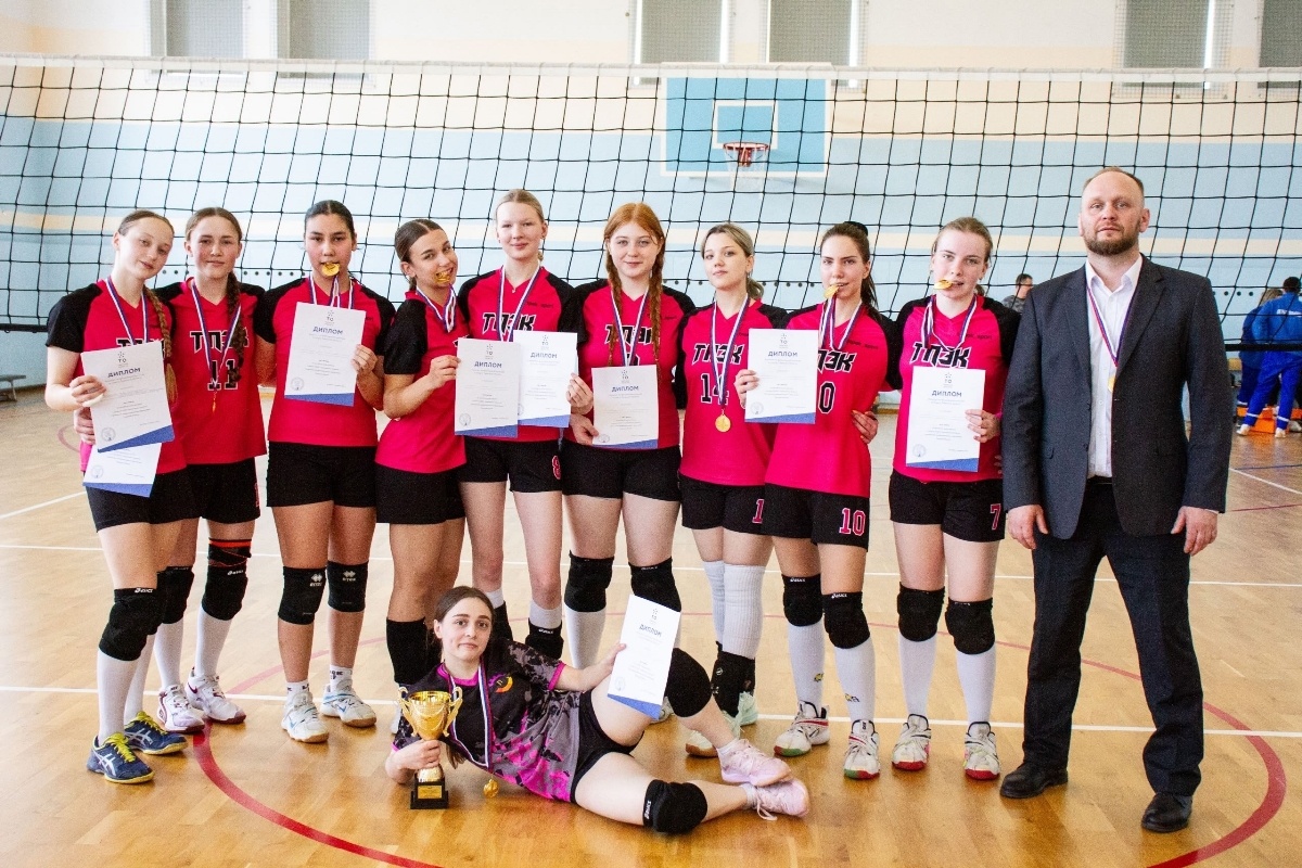 Комплекты медалей завоевали команды Твери, Калязина и Торжка. В Твери завершились соревнования по волейболу среди девушек в рамках 39-й спартакиады студентов профессионального образования области. На площадке медицинского колледжа награды региональной пробы оспаривали команды 13 учебных заведений из разных муниципалитетов Верхневолжья. По результатам всех игр у сетки третий год подряд первое место заняла команда волейболисток Тверского промышленно-экономического колледжа. Под руководством Павла Воронина обладательницами золота региональной пробы стали Софья Забелина (капитан), Полина Панина, Екатерина Жирнова, Анна Павлова, Ольга Будько, Мадина Каримова, Дарья Астраханова, Полина Смирнова, Ульяна Забелина и Полина Каменнова. Серебряные медали из Твери увезли волейболистки Калязинского педагогического колледжа. Бронзовыми призерами стали студентки Торжокского педагогического колледжа имени Бадюлина. Фото пресс-службы Тверского промышленно-экономического колледжа. Сделать «Твериспорт» ос