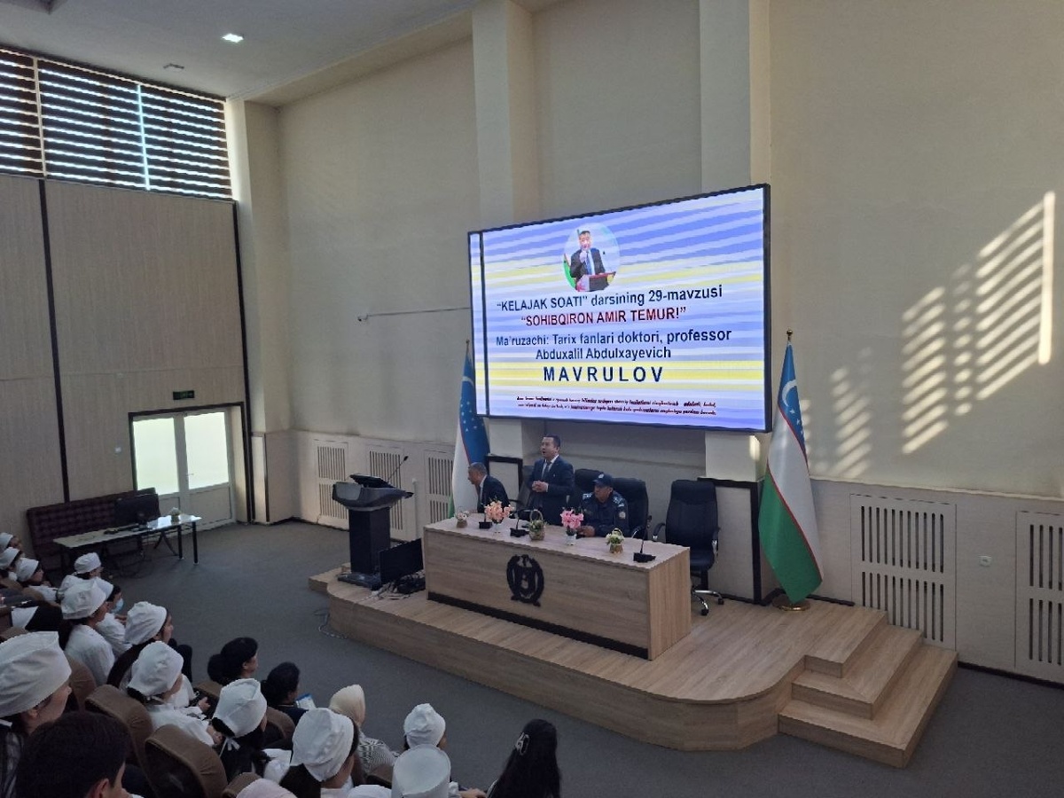 ”! 🔺Toshkent davlat tibbiyot universitetida tashkil etilgan navbatdagi “Kelajak soati” mashg‘uloti “Sohibqiron Amir Temur” mavzusiga bag‘ishlandi. Unda tarix fanlari doktori, professor A.A. Mavrulov tomonidan mazmunli va batafsil ma’ruza qilindi. 🔺Ma’ruza davomida Amir Temurning boy tarixiy merosi keng yoritilib, uning davlat boshqaruvi tizimi, kuchli va markazlashgan davlat barpo etish yo‘lidagi sa’y-harakatlari, harbiy strategiyasi, xalqaro diplomatik aloqalari haqida aniq misollar asosida tushuntirishlar berildi. Professor Amir Temurning faoliyati nafaqat o‘z davrida, balki bugungi kun uchun ham muhim ahamiyat kasb etishini alohida ta’kidlab, uning tajribasi orqali tarixiy tafakkurni shakllantirish mumkinligini qayd etdi. 🔻Zero, Amir Temur faoliyatini o‘rganish tarixiy bilimdan tashqari shaxsiy fazilatlarni rivojlantirish – adolatli, halol, mas’uliyatli va fidoyi bo‘lish, o‘z jamiyatimizga foyda keltirish kabi qadriyatlarni anglashga yordam beradi. 🔺Mashg‘ulot yakunida mamla