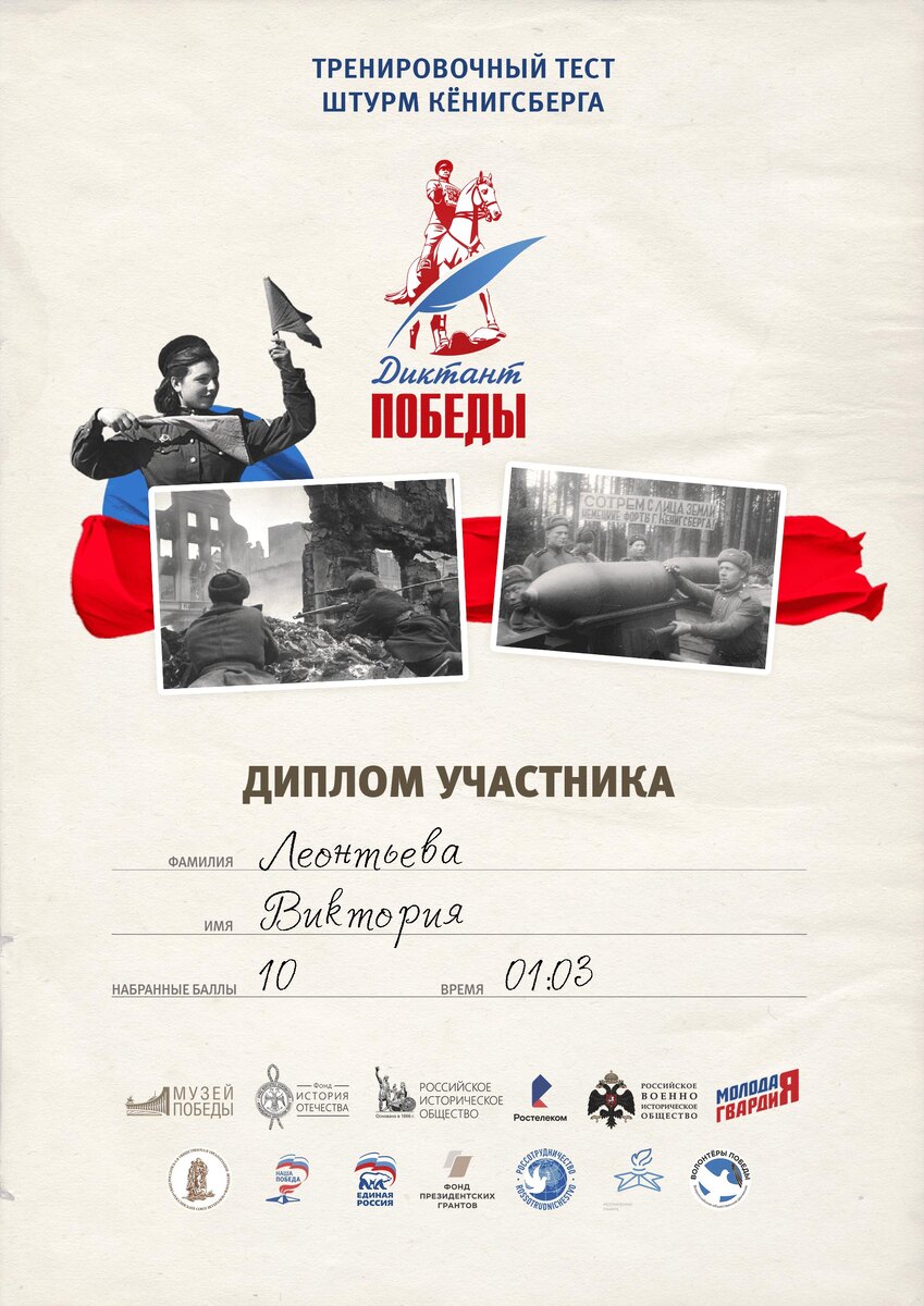 Вышел новый тренировочный тест для подготовки к «Диктанту Победы», посвященный штурму Кёнигсберга.