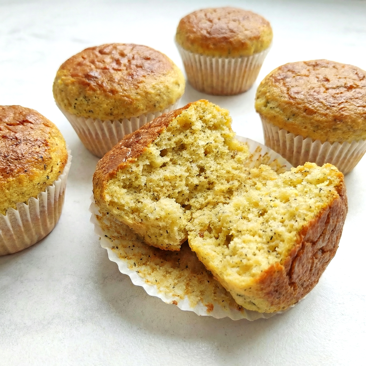 Приготовление: 1️⃣ Соедините все сухие ингредиенты в одной миске. 2️⃣ В другой миске смешайте желтки, кефир и масло. 3️⃣ Объедините обе смеси до однородности. 4️⃣ Разложите тесто по формочкам. 5️⃣ Выпекайте при 180°C около 25 минут. КБЖУ на 100 г: 350 / 13 / 32 / 5
