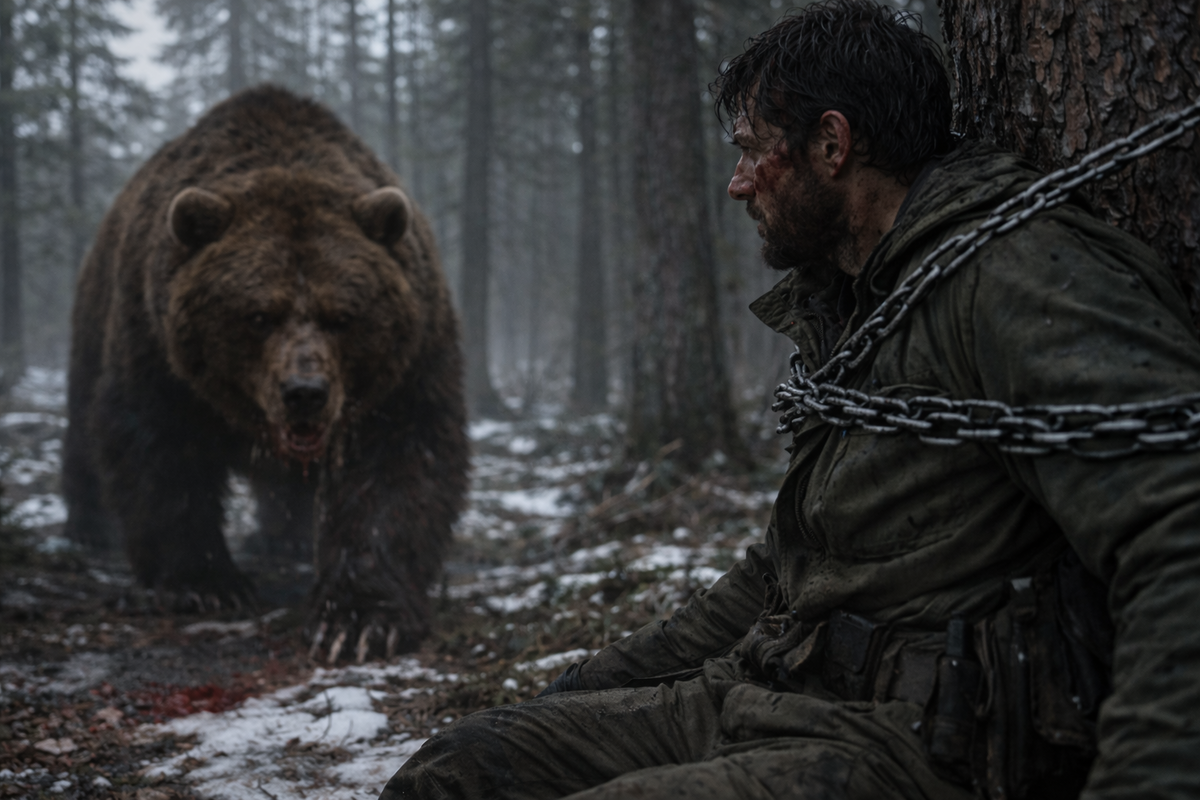 Утро седьмого дня разорвал хруст веток и знакомые голоса. Браконьеры вернулись. Волк и двое его подельников шли прямиком к месту, где оставили егеря, уверенные, что от него остались лишь кости. Но путь им преградил медведь. Шерсть хищника встала дыбом, он зарычал, защищая не только свою территорию, но и своего безмолвного пленника-соседа.