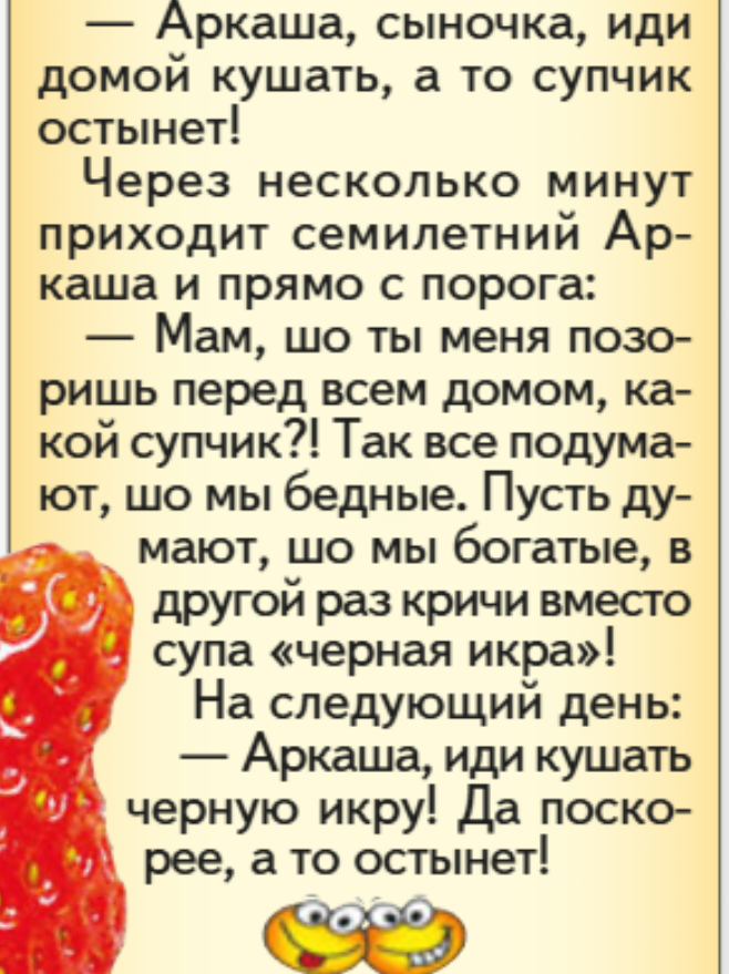 - Дедушка Зяма, мы все в предвкушении настоящего одесского юмора — жги, наш дорогой юморист! Пусть улыбки и смех наполнят наши сердца и сделают этот день красивым.