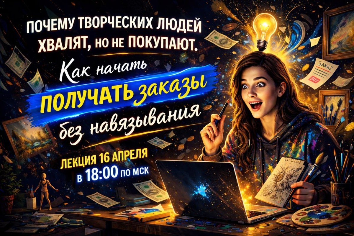 Хочу сообщить, что 16 апреля проведу лекцию «Почему творческих людей хвалят, но не покупают