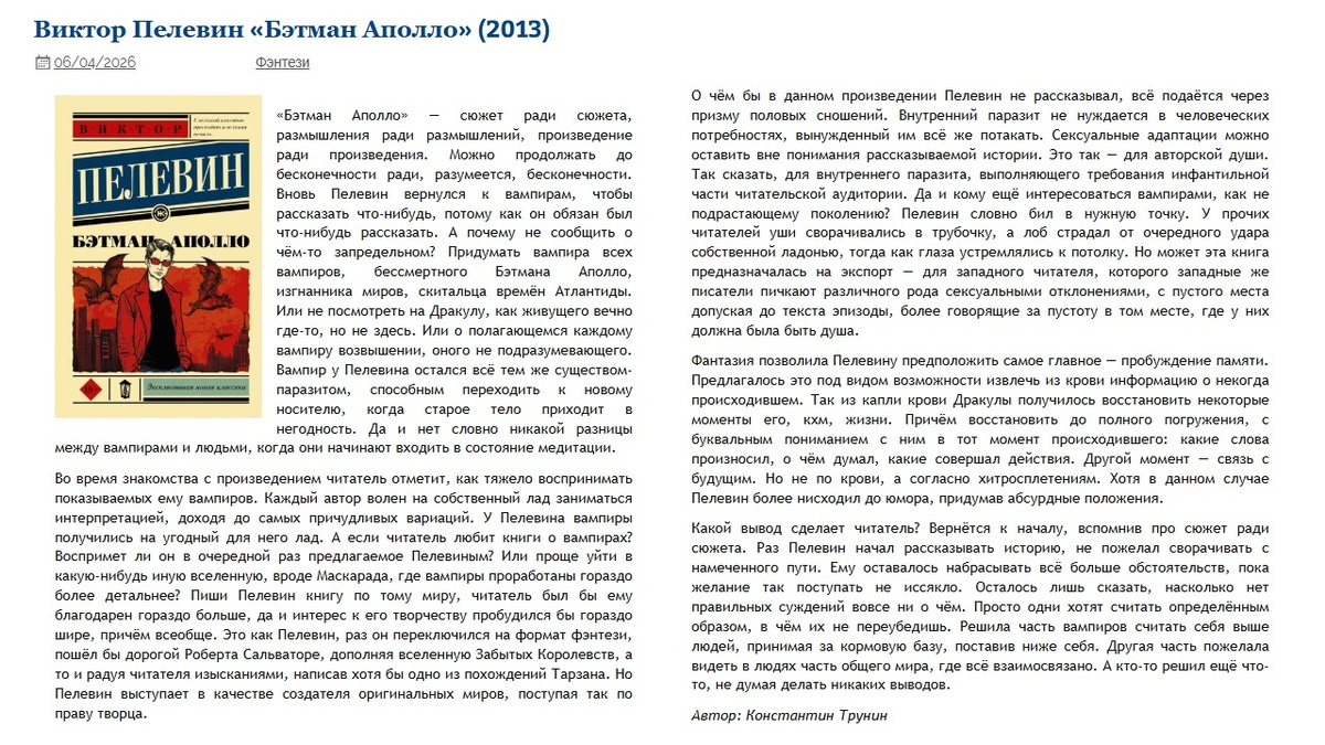 Виктор Пелевин «Бэтман Аполло» (2013) | Критика