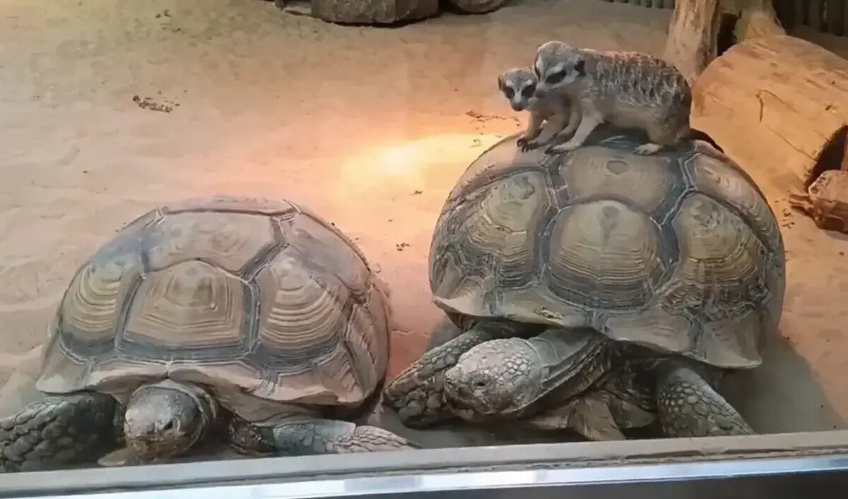 В Казанском зооботсаду сурикаты начали использовать черепах в качестве своего транспорта. Видео, на котором зверьки катаются на одной из черепах, было опубликовано на канале зоопарка в MAX.