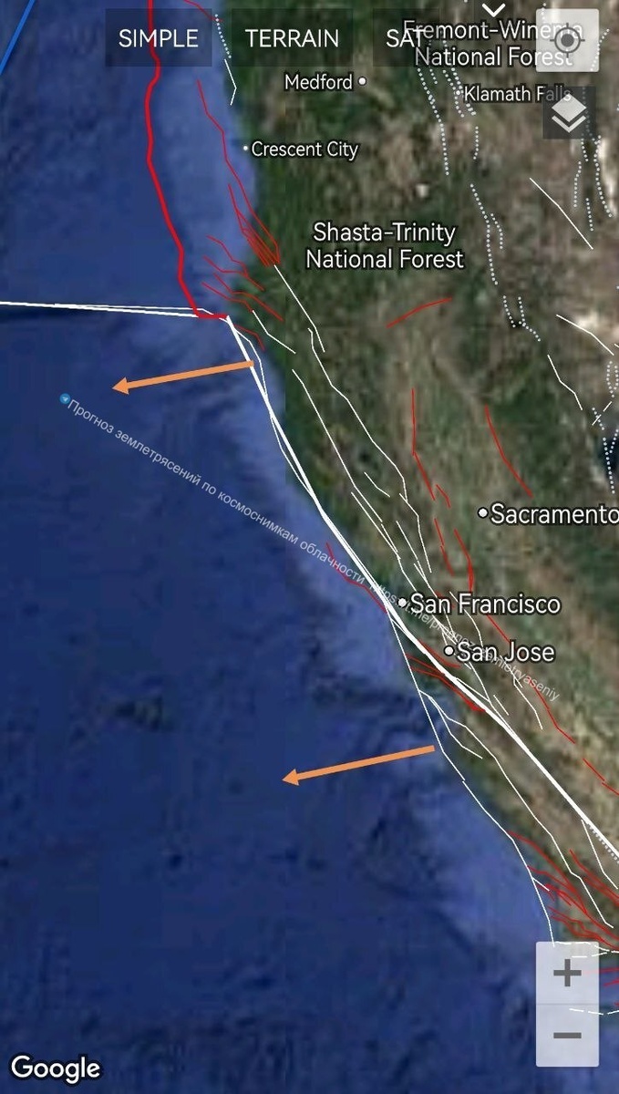 По типу провала в тумане трассируется северная Калифорния на уровне М6+
