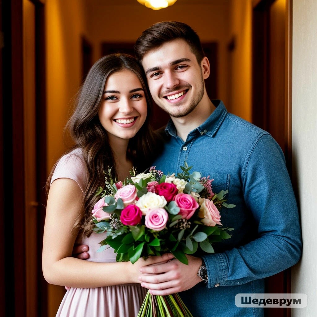 После долгих объятий и поцелуев Андрей вручил ей цветы и звнес в квартиру свои вещи, а потом стал знакомиться с щенком.