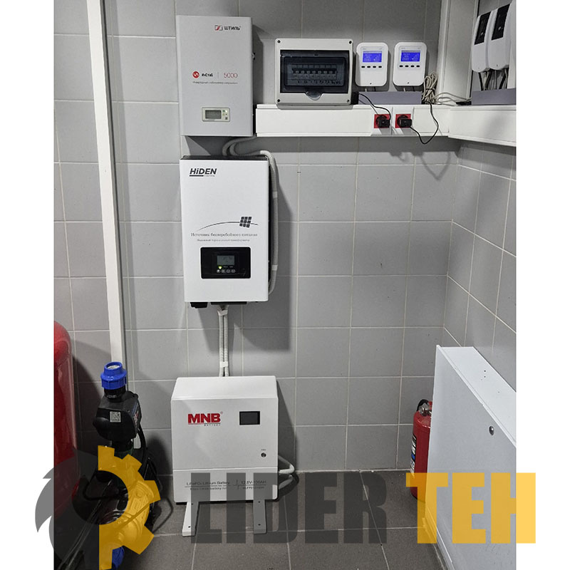 Загородный дом, нестабильная электросеть, газовый котёл и целых 10 циркуляционных насосов. В инженерной практике это классическая зона риска: при отключении питания останавливается гидравлика, теплообменник перегревается, а автоматика котла уходит в ошибку. В условиях отрицательных температур такая ситуация грозит разморозкой контуров и дорогостоящим ремонтом. Клиент обратился с чёткой технической задачей: обеспечить непрерывную работу котельной без вмешательства человека. 🔹 Что установили В основе системы резервного питания — инвертор Hiden Control HPS30-1512 мощностью 1,5 кВт с формированием чистой синусоиды на выходе (THD < 3%). В паре с ним работает внешний накопитель энергии MNB Battery LFPW-12.8-100 LCD Touch на базе литий-железо-фосфатной (LiFePO₄) химии. Система спроектирована на поддержание постоянной нагрузки 500 Вт в течение 3 часов автономной работы. 🔹 Почему LiFePO₄, а не классическая AGM-батарея? На этапе подбора оборудования клиент справедливо отметил разницу в старто