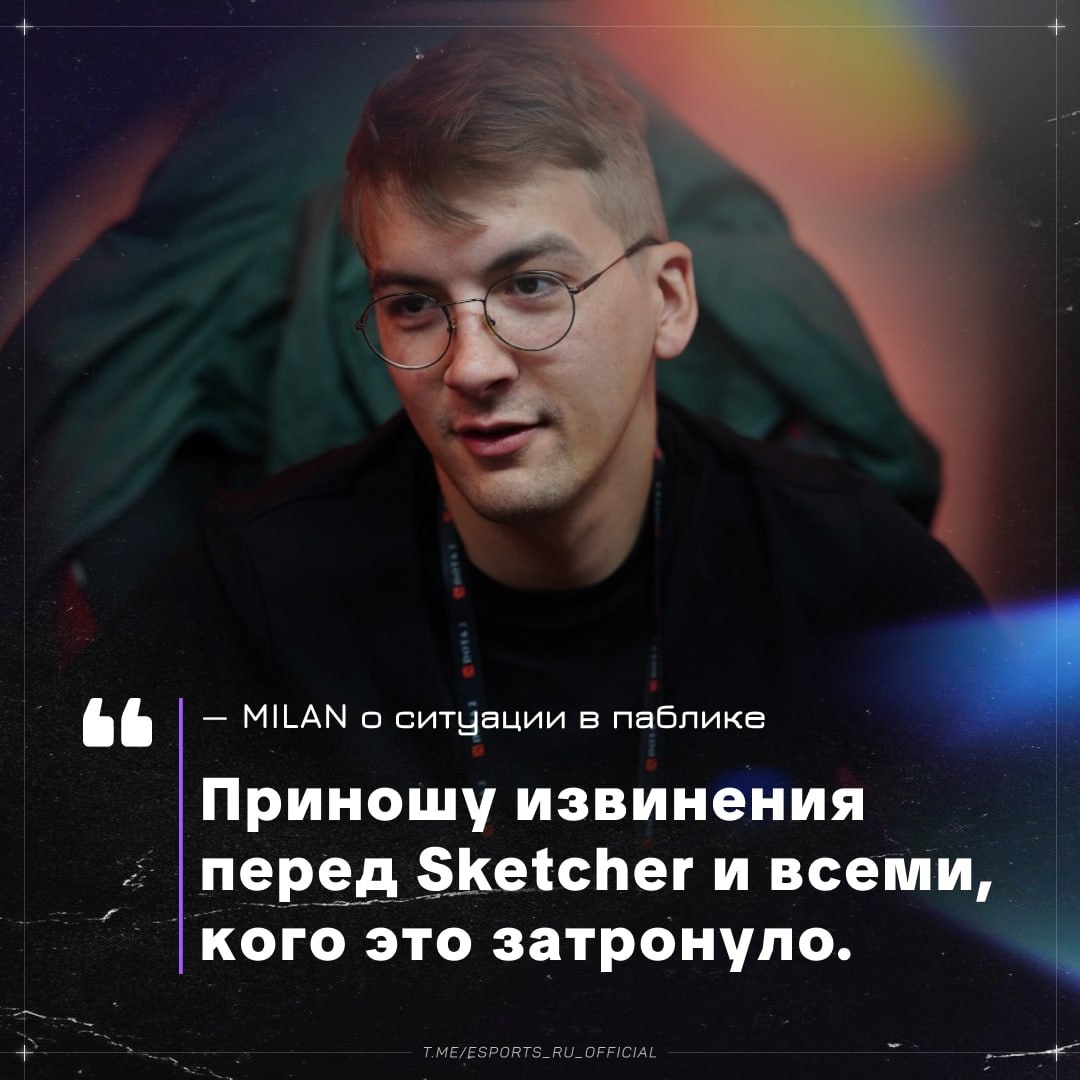 MiLAN извинился за вчерашнюю ситуацию со Sketcher ⚡️ Привет всем. Я хочу прокомментировать своё недавнее поведение в пабе. Прежде всего, то, что я сказал, было недопустимо, и для этого нет оправданий. ⚡️ Я хочу извиниться перед всеми, кого это затронуло: перед гражданами Украины, оказавшимися в трудной жизненной ситуации, перед сообществом, фанатами и командой Team Spirit. Я понимаю, что своими словами я подвёл не только себя, но и людей, которые доверяют мне. ⚡️ Я уже столкнулся с первыми последствиями своих действий со стороны моей организации, и эта ситуация в целом стала для меня серьёзным уроком. ⚡️ Ещё раз приношу извинения перед Sketcher и всеми, кого это затронуло. 👍 Esports.ru | Dota