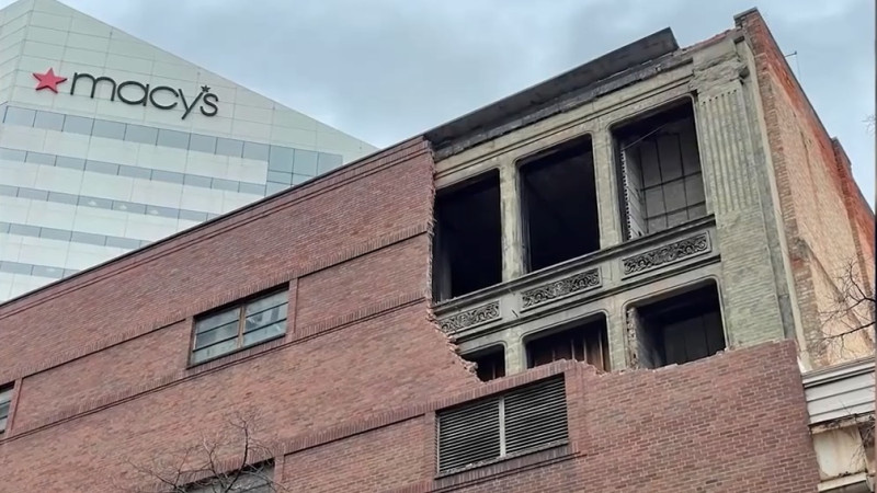 На самом деле это популярное в среде американских альтернативщиков фото сделано вовсе не в Нью-Йорке, где здание Macy's имеет совершенно другую форму. Дело в том, что еще одно здание с таким названием есть в центре города Цинциннати, штат Огайо. И как видно на фотографии этого здания от 2019 года, рядом с ним действительно есть похожие кирпичные здания. Так что это точно не результат сгенерированного с помощью ИИ изображения. К тому же я нашел и другие фотографии, которые были сделаны в 2021 году во время ремонтных работ, когда строители и наткнулись на «закамуфлированный» новодельной кирпичной кладкой исторический фасад викторианской эпохи, состоящий из элементов, как считают специалисты, «итальянского дизайна XVIII века». Так что это — точно и не фотошоп, ибо есть достаточное количество изображений этого объекта с различных точек. И даже — видео американских новостных каналов, рассказывающих об этой находке. https://dzen.ru/a/aFlnOZFIvgKnwHsP При этом, очень странным является то