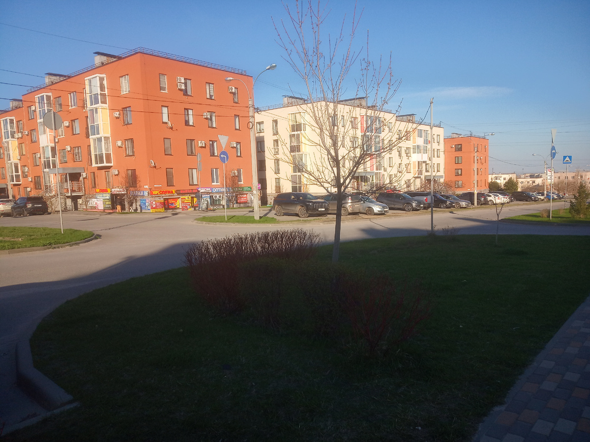 Привет всем. Сейчас больше времени провожу в реальной жизни, чем в виртуальной, тем более что интернет у нас отключают рано (ещё до 19 вечера в последние дни), и вечером, когда я могла бы добраться до ноутбука, уже ничего не загружается. Между тем, на улице так по-весеннему ясно и хорошо, что уже и не верится, что чуть больше месяца назад были морозы и лежал снег. В нашем микрорайоне есть площадка для выгула собак с разными приспособлениями для дрессировки и развлечения питомцев, это удобно. Всё в природе радуется весне, даже хвойные деревья выпускают молодую зелень. Сегодня путь во время прогулки лежал другой дорогой (не той, которой ходим обычно), так как набралось много мелких дел. Для начала сходили в пункт "Авито", нужно было отправить книги. Потом прошлись по аллее; когда-то, когда ещё не было Черкасовского сквера, она была единственным местом, где у нас можно было прогуляться. Вот такие трогательные молодые веточки появляются на хвойных, по цвету они отличаются от прежних: те -