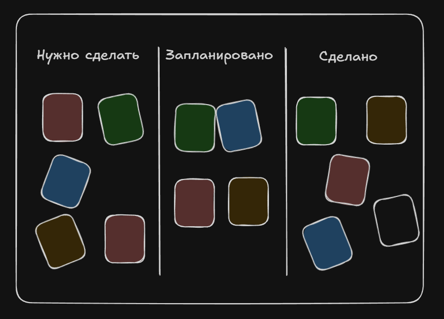 - Запланировано — всё, запланировано на этот год, но не понятно куда конкретно отнести на следующей доске