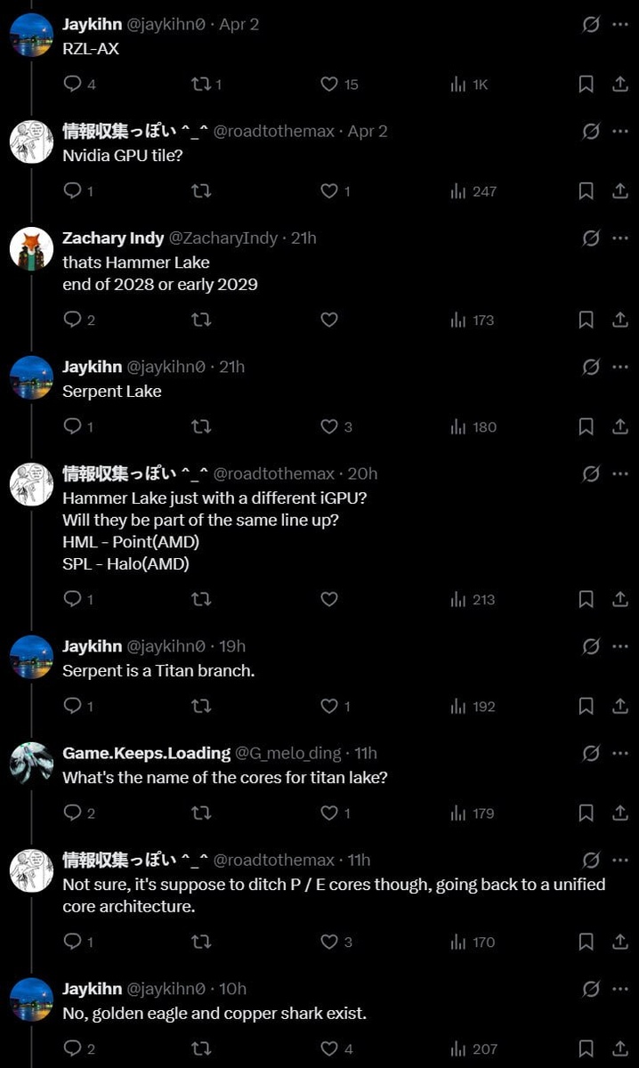 Также Jaykihn раскрыл название архитектуры производительных ядер (P-Core) следующего поколения — Cooper Shark. Это указывает на то, что Intel пока не переходит к полностью унифицированным ядрам. Таким образом, компания, судя по утечкам, одновременно экспериментирует с внешней графикой от NVIDIA и сохраняет классическую гибридную схему CPU, откладывая переход к unified-архитектуре.