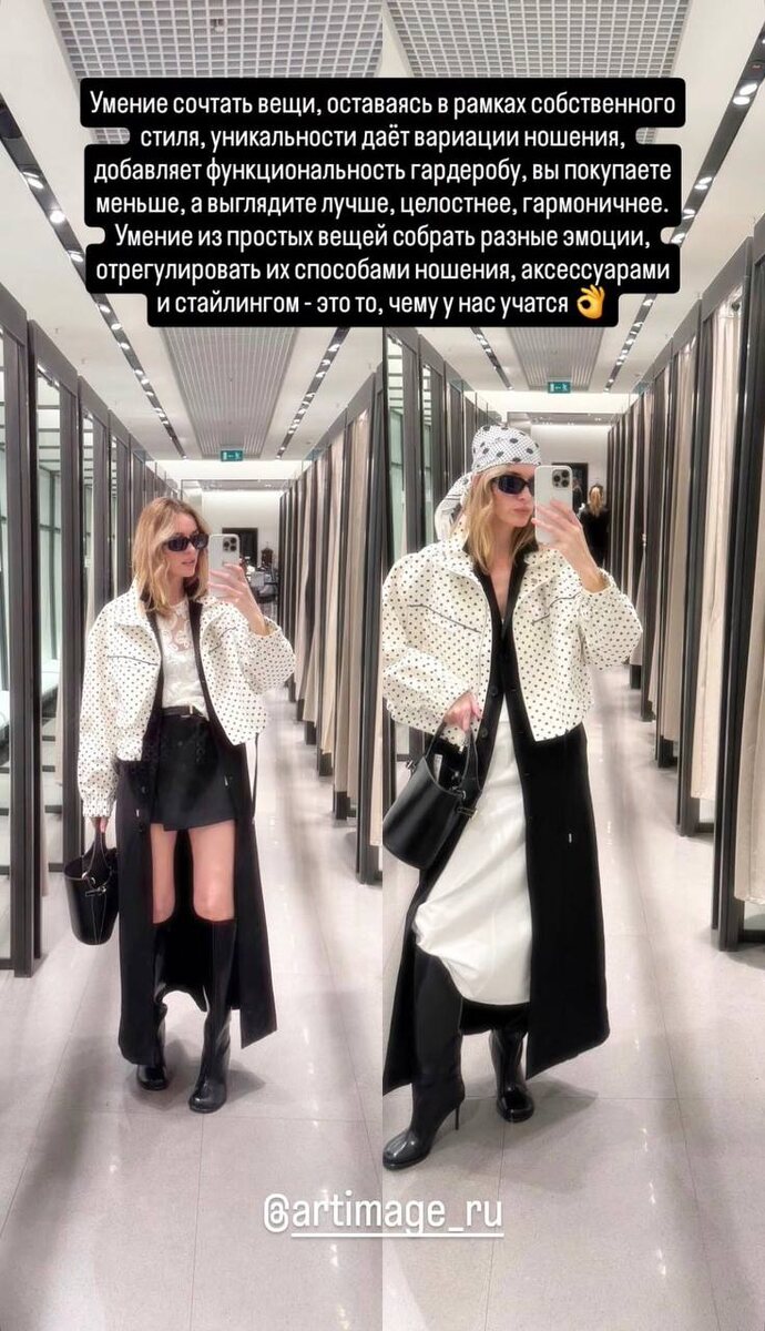 Умение сочетать вещи, оставаясь в рамках собственного стиля и уникальности, даёт вариативность ношения, добавляет гардеробу функциональности: вы покупаете меньше, а выглядите лучше, целостнее и гармоничнее.
