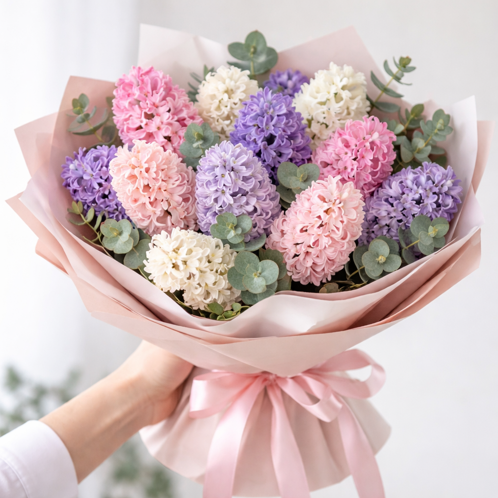 Если хочется подарить настоящее весеннее настроение, гиацинты в Хабаровске — один из самых удачных вариантов. Яркие, ароматные и выразительные, они мгновенно привлекают внимание и создают ощущение тепла, уюта и заботы. Эти цветы ассоциируются с обновлением, нежностью и искренними эмоциями. В интернет-магазине Shop Flower вы можете заказать гиацинты в Хабаровске, не выходя из дома. Ниже рассказываем, как выбрать действительно свежий букет и что сделать, чтобы он радовал как можно дольше. Чтобы букет выглядел красиво не только в момент вручения, но и сохранял свежесть после, важно обратить внимание на несколько деталей. На что смотреть при выборе: Если вы планируете купить гиацинты в Хабаровске, лучше выбирать цветы у проверенного продавца, который следит за качеством хранения и сборки букетов. В Shop Flower каждый букет проходит проверку перед отправкой. Поэтому вы получаете только свежие цветы, аккуратно собранные и готовые к вручению. Также можно заказать гиацинты в Хабаровске с доста