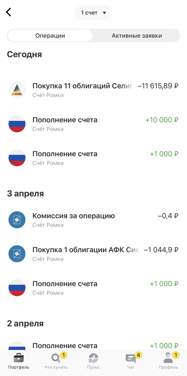 Покупка в портфель Ромки прошла успешно. Теперь в портфеле появилось 11 шт облигаций Селигдар 001Р-04