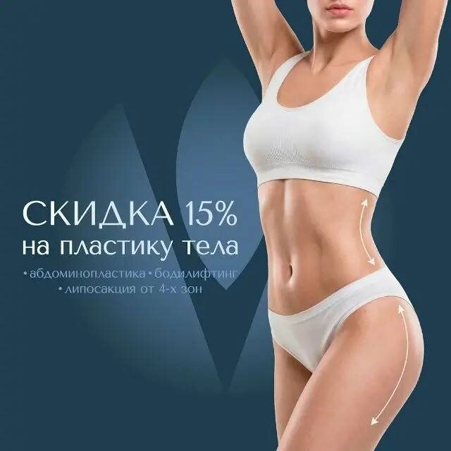 : Подготовьте тело к лету - скидка 15% на операции - абдоминопластику - операцию по восстановлению красивого и подтянутого живота; - бодилифтинг - комплексную коррекцию контуров тела; - липосакцию от 4-х зон - для гармоничных пропорций и более выразительного силуэта. Специальное предложение действует до 31.05.2026 г. Все условия и список участвующих пластических хирургов размещены на сайте клиники Записывайтесь на бесплатную консультацию пластического хирурга по тел.: +7 (812) 607 13 30