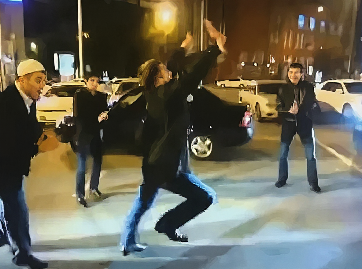Возможно, их ученики по ночам и практикуют свои умения – тут же, на площадке. Кто на крыше автомобиля, кто прямо на дороге. Без специальных залов, всё на улице. Для них это комфортно.