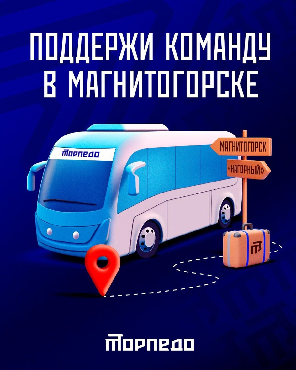 Второй раунд плей-офф Кубка Гагарина уже здесь! 🏆 11 апреля (суббота) «Торпедо» проведет второй матч серии против «Металлурга» в Магнитогорске — отличный шанс поддержать команду на выезде ❤️ Отправление: 10.04 в 17:00 — Подробная информация и запись: 👉 @FOXXXYNAT
