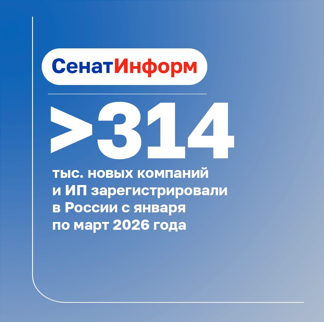 Об этом в разговоре с «СенатИнформ» заявил первый зампред Комитета СФ по экономической политике Иван Абрамов. С января по март 2026 года в России зарегистрировали 314 404 новые компании и ИП — это на 3,64% больше, чем за тот же период 2025 года, выяснил сервис проверки контрагентов Rusprofile. Сенатор отметил, что рост числа новых предпринимателей может быть связан с изменениями в законодательстве, так как у них меньшая налоговая нагрузка. Людям становится интересно попробовать себя в малом бизнесе — открыть ИП или небольшую компанию, чтобы воспользоваться льготными условиями и при этом заработать. Иван Абрамов первый зампред Комитета СФ по экономической политике Лидерами по росту числа новых бизнесов стали Вологодская область (+27,4%), Кировская область (+25,63%), Карелия (+25,61%), Кемеровская область (+24,53%) и Бурятия (+24,05%). В целом положительную динамику показали 63 региона, пишет ТАСС. 📲 Подробнее — в MAX