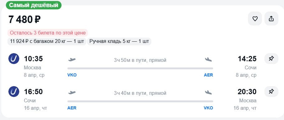🔥Билеты из Москвы в Сочи за 7500 рублей в обе стороны