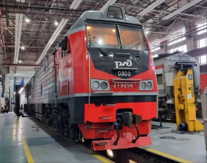 ✅ В сервисное локомотивное депо Тюмень Свердловского филиала «ЛокоТех-Сервис» на первое обслуживание прибыл магистральный грузовой тепловоз 2ТЭ25КМ с юбилейным номером 800. Локомотив выполнен в праздничной ливрее со стильным геометрическим узором, который отражает самобытность и оригинальность тепловоза. Торжественная передача новой машины РЖД состоялась в конце февраля на предприятии-изготовителе – Брянском машиностроительном заводе (БМЗ). 📌 Количество тепловозов 2ТЭ25КМ в депо Тюмень теперь увеличилось до 62 единиц. Это почти четверть от общего количества локомотивов, проходящих здесь обслуживание. Современные тепловозы перевозят грузы на участках Тюмень – Тобольск – Сургут – Новый Уренгой. В 2025 году депо успешно освоило ремонт 2ТЭ25КМ в объеме ТР-3. В настоящее время предприятие осуществляет их обслуживание и ремонт в объеме ТО-2, ТО-3, ТО-4, ТР-1, ТР-2, ТР-3. За прошлый год проведено обслуживание и ремонт порядка 5700 секций тепловозов 2ТЭ25КМ. 👍 Предприятие регулярно соверш