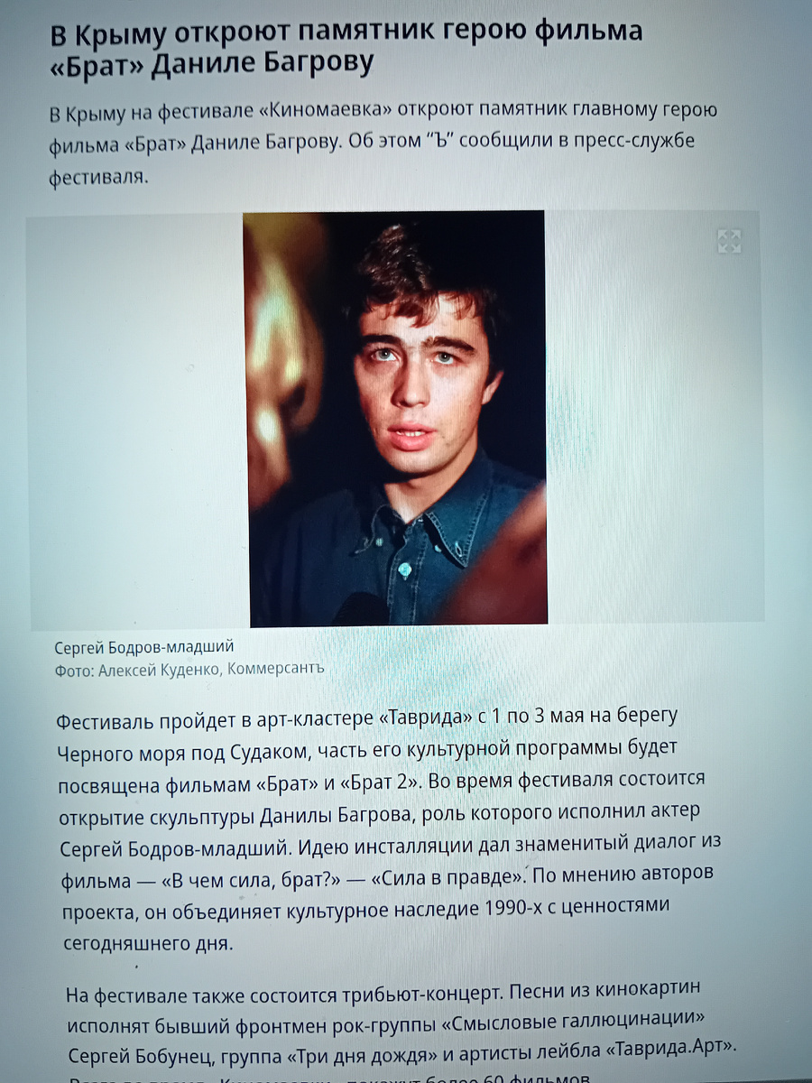 Заметьте - памятник поставят не исполнителю главной роли,покойному Сергею Бодрову младшему! А его экранному,если можно так выразиться, герою. Ну,тому самому,который в фильме отправился людей убивать,потому что его об этом старший брат попросил. Ну как не порадеть родному человечку! Пошёл и начал убивать. А чо такого? Зато кино хорошее получилось! Ну вот сами посудите,если бы его старший брат работал не киллером,а к примеру на стройке кирпичи клал и попросил Данилушку ему в этом деле помочь. И тот согласился. И братья по очереди клали бы на стройку...то есть на стройке кирпичи...