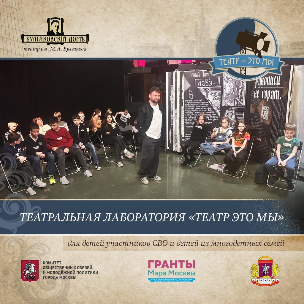 !» В прошедшее воскресенье ребятам в рамках театральной лаборатории проводил мастер-класс актер, режиссер и хореограф Филипп Каплан. Вы могли видеть Филиппа в театре им. Булгакова в спектакле «Стакан воды, или заговор по-английски» и в спектакле «Ромео и Джульетта». Филипп Каплан провел мастер-класс по своей авторской методике. Дети работали с вниманием, пластикой и дыханием. После общего занятия ребята продолжили репетиции своих выпускных спектаклей, которые можно будет увидеть в мае на фестивале «135 лет Мастеру: наследие Булгакова». «Театральная лаборатория для детей участников СВО и детей из многодетных семей "Театр – это мы!"» реализуется при поддержке Грантов Мэра Москвы и Префектуры ЦАО г. Москвы.