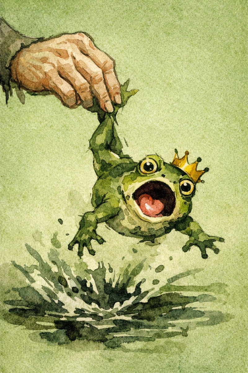 Принцесса Элеонора позеленела от зависти. Она вопила и топала ногами, кричала и махала руками, пока не превратилась в уродливую лягушку.