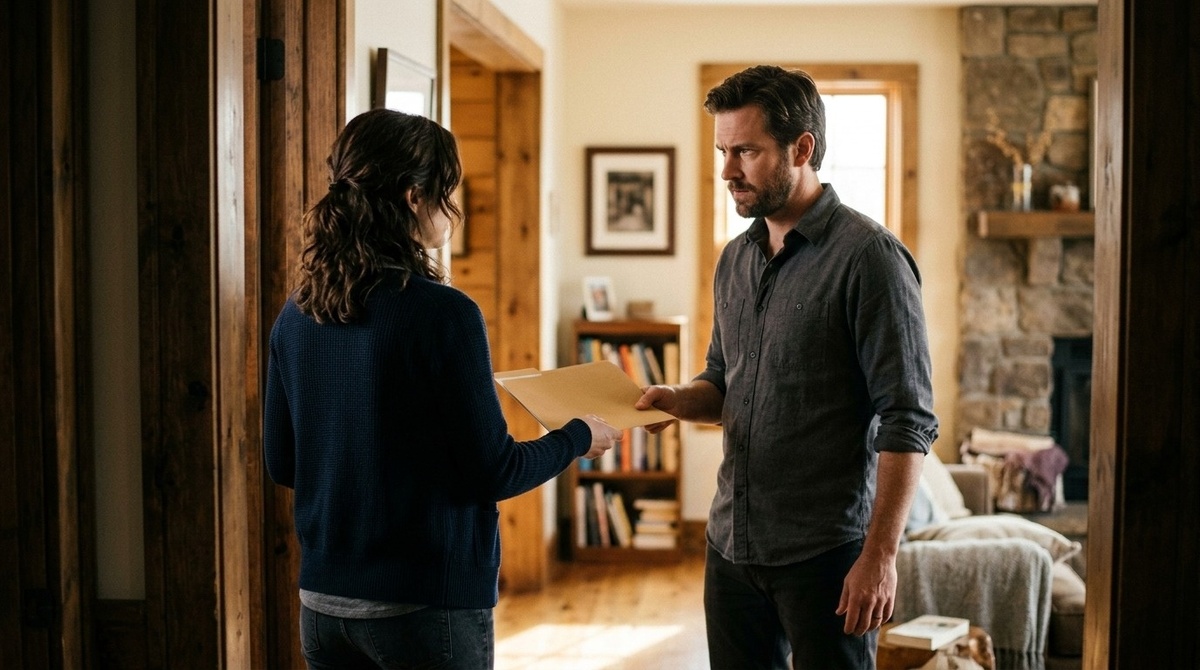 Вадим вышел на кухню, увидел бумаги и остановился в дверях.