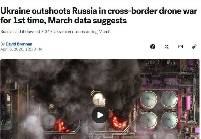 В марте Россия сообщила о сбитии 7347 беспилотников ВСУ (в среднем 237 в день) — рекордный показатель. ПВО ВСУ заявила, что в том же месяце бандеровцы столкнулись с 6462 российскими беспилотниками и 138 ракетами, из которых около 90% беспилотников и 74% ракет были перехвачены или подавлены. Напоминаю, что идёт пятый год операции, одна из целей которой - демилитаризация фашистского режим в Украине Подпишись на Телеграм Александр Семченко