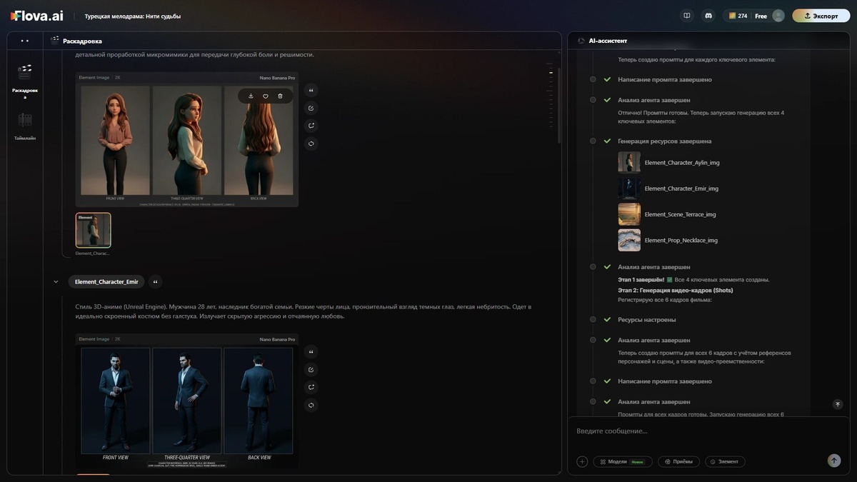 Я попробовал, там какая то полноценная ии студия для работы с видео, промпт вы свой попутно обсуждаете с ai ассистентом Дают 200 кредитов за аккаунт, есть реферальная система и пока ты генерируешь видео тебе еще за очивки какие то начисляют кредиты Я выбрал режим вдохновения, и ассистент мне сделал креативный бриф где я сидел интерактивно составлял свой промпт😏 Спустя 30 минут обсуждения моей идеи для видео и разговоров по душам с искусственным интеллектом он все таки согласился сгенерировать мне видос Но это еще не все, он начал создавать мне минутный шедевр и кредиты закончились после первого 15 секундного отырвка, я зарегался по своей реф ссылке еще с 3 гугл акков и все таки доделал свой туркиш сериал Прошел уже где то час, он до сих пор делает видео по элементам))) Догружу видос как будет готов https://www.flova.ai/