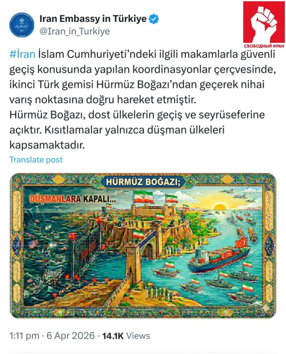 🌊🚢 Иранские власти сообщили, что проход был согласован для безопасного движения к месту назначения. В Тегеране отдельно подчеркнули: Ормуз открыт для дружественных стран, а ограничения касаются только враждебных режимов. Без лишнего шума — маршрут для своих работает. Подпишитесь на канал