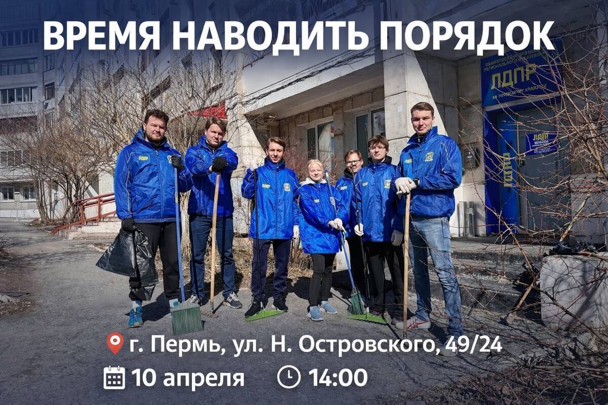 ! Снег сошёл — и, к сожалению, вместе с ним «всплыло» всё, что копилось за зиму: окурки, мусор, грязь. Актив ЛДПР выходит на субботник — и приглашает присоединиться! 📍 г. Пермь, ул. Н. Островского, 49/24 📅 10 апреля 🕑 14:00 Время наводить порядок в своем дворе, в городе, в крае, в стране!