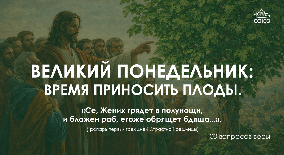 🌿 Великий Понедельник: Почему Христос проклял смоковницу и о чем это предупреждает нас? Страстная седмица начинается не с торжественных гимнов, а с серьезного предупреждения. Евангелие рассказывает, как Христос, видя при дороге смоковницу (инжирное дерево), покрытую густой зеленью, подошел к ней, но не нашел плодов. И тогда дерево тотчас засохло. На первый взгляд, это кажется странным: разве дерево виновато? Но в этом действии скрыт глубокий символ, который касается каждого, кто называет себя верующим. 🍃 «Листья» без «плодов» Смоковница — это образ человеческой души. У этого дерева была прекрасная «внешность»: пышная листва обещала, что путник найдет под ней подкрепление. Так и в нашей духовной жизни: Мы можем «зеленеть» знанием обрядов и правил. Мы можем красиво говорить о любви и вере. Мы можем носить статус «постящихся» уже шесть недель. Но Господь ищет не внешнего благочестия (листьев), а плода — реальной перемены сердца, кротости, милосердия и деятельной любви. ⏳ Время «Жениха»